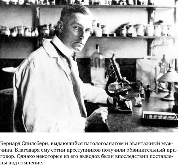 Состязательная система английского правосудия с ее театральностью предполагала, что встать на защиту доброго имени судебной медицины должен был яркий, харизматичный человек. Такой фигурой стал неотразимый Бернард Спилсбери. Красавец и блестящий оратор, он никогда не появлялся на публике иначе как во фраке, цилиндре и гетрах. Его искусство не вызывало сомнений. Он одинаково владел обеими руками и работал с трупом очень быстро и точно, а о своих находках рассказывал ясно и не злоупотребляя терминами.