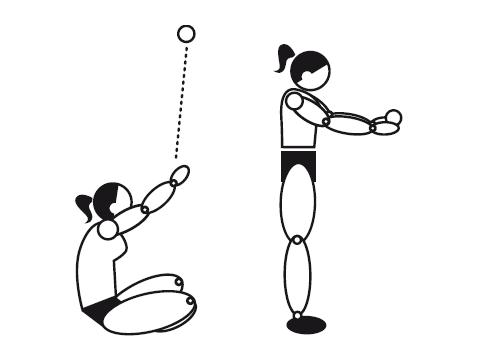 14. И.п. – основная стойка. Бросить мяч вверх, сесть, скрестив ноги, и поймать мяч (рисунок 182).