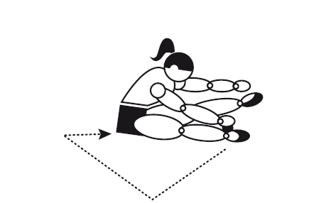 1. Упражнение выполняется парами. Игроки стоят лицом друг к другу, один них владеет двумя мячами. По сигналу игрок с мячами один мяч передает партнеру, поворачивается к нему спиной и прыжке, согнув ноги, передает ему второй мяч двумя руками снизу. После этого выполняет ускорение вперед получает передачи с левой и правой стороны.