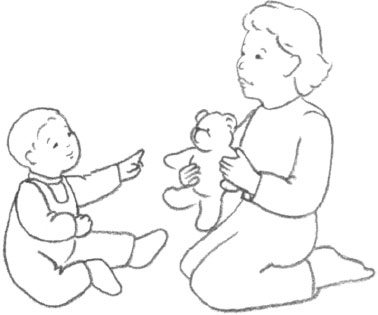 • Сядьте с ребенком на пол и положите себе на колено одну из его любимых мягких игрушек. Поговорите с игрушкой нараспев, а потом отдайте ее ребенку.
