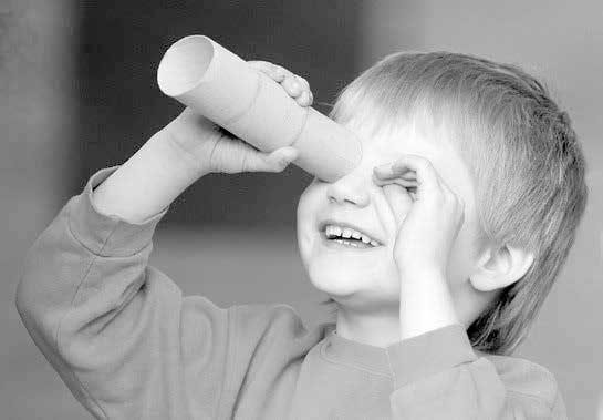 Из двух склеенных вместе трубочек от туалетной бумаги делается бинокль. С ним можно отправиться на охоту за интересными вещами. Еще проще сделать подзорную трубу: через трубочку от бумажных полотенец можно внимательно рассматривать фрагменты окружающего мира, выхватывая их из общего фона. Направляя подзорную трубу то на один, то на другой предмет, можно во всех подробностях разглядывать листочки, былинки или лицо близкого человека.