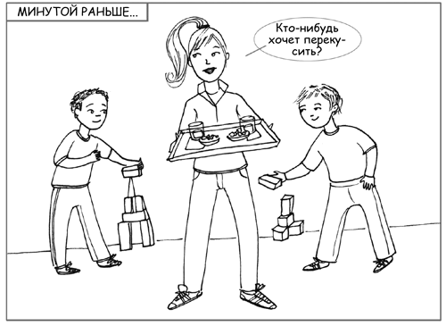 Безусловно, иногда ошибочным решениям и далеким от идеала поступкам наших детей ничего не предшествует. Но в ряде случаев можно уловить сигналы, которые они нам подают, и, действуя на опережение, избежать необходимости призывать их к дисциплине. Например, предупредить, что через пять минут вы уходите из парка, или всегда строго придерживаться времени отхода ко сну, чтобы дети не успевали переутомиться и раскапризничаться. Дошкольнику можно начать рассказывать увлекательную сказку и, остановившись на самом интересном месте, объявить, что продолжение последует, как только он окажется в своем автокресле. Можно, заметив, что дети вот-вот рассорятся, затеять новую совместную игру. А можно заинтриговать заскучавшего двухлетнего малыша заговорщицким: «Эй, пока ты не бросил этот кусок картошки на соседний столик, давай-ка вместе посмотрим, что у меня в сумочке!»