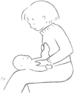 • Вы можете покачивать малыша, сидящего или лежащего у вас на коленях на животе или спине, сидящего у вас на колене и раскачивающегося из стороны в сторону.