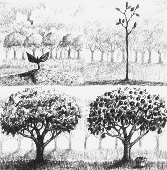 Любой родитель (или сын, дочь, брат, сестра, бабушка, дедушка, тетя, дядя, племянник, племянница или другое лицо), который действительно хочет стать проводником перемен и помочь своим близким подняться к более высоким вершинам, может добиться этого, особенно если он понимает и применяет в своей жизни принципы, связанные с четырьмя основными лидерскими ролями. Поскольку семья является естественным, живым, растущим организмом, эти роли можно описать с помощью «дерева принцип-центричного лидерства». Это дерево служит напоминанием о том, что мы имеем дело и с природным явлением, и с естественными законами и принципами. Оно поможет нам разобраться в четырех лидерских ролях, а также находить наилучшие стратегии решения семейных проблем.