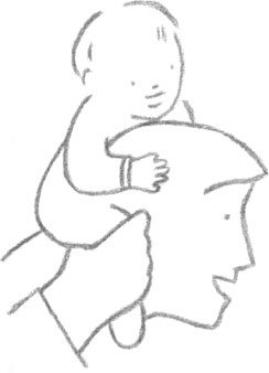 • Ребенок должен сидеть у вас на плечах, свесив ноги вперед (или у вас на спине, обхватив руками вашу шею).