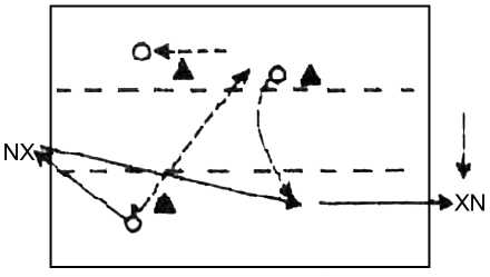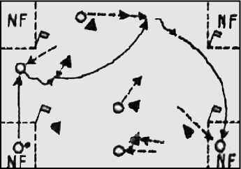 • нейтральный команды, владеющей мячом, должен освобождаться от противника и просить пас. Завершение атаки, как в упражнении 1 (рис. 5).