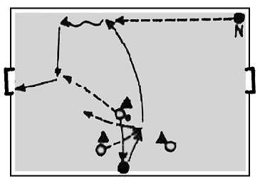 • Основная задача: сознательное завлечение обороняющихся соперников на одну из сторон площадки для высвобождения другой стороны для внезапной атаки.