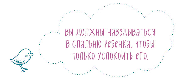 Подобно чашке и ложке все эти внешние элементы скоро начнут ассоциироваться у малыша со сном и станут необходимыми для его засыпания. Кроме того, ребенок будет нуждаться в них всякий раз, просыпаясь ночью. Именно поэтому так важно, чтобы вы сами не стали теми внешними элементами, ассоциирующимися у малыша со сном. Вам нужно уйти из комнаты до того, как дитя заснет. Вы не должны помогать малышу заснуть, укачивая его, лаская его или строя гримасы. Если вы будете так делать, кроха будет требовать вашего присутствия после каждого своего пробуждения, и у вас не останется выхода, кроме как установить кресло сразу за дверью и нести в нем караул.
