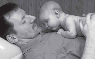 Есть еще одна возможность приучить ребенка лежать на животе: кладите его себе на грудь. Устройтесь удобно, подложив что-нибудь под затылок, например скатанное полотенце. Положите ребенка (даже если ему всего несколько дней от роду!) животиком к себе на грудь. Чувствуя биение вашего сердца, ваши движения при вдохе и выдохе, он когда-нибудь попытается приподнять голову.