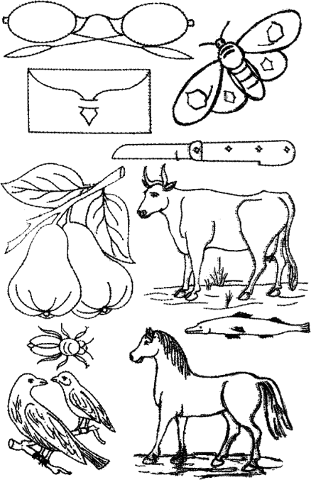Для этой работы необходим листок бумаги, на котором нарисована картинка… и ватманская бумага, которую вкладывают в рисунок. Листок ватманской бумаги должен быть чуть-чуть меньше листика, на котором изображен рисунок, так как края последнего необходимо завернуть, чтобы обхватить со всех сторон бумагу: иначе она будет сдвигаться с места. Таким образом, приготовленный листок кладут на что-нибудь мягкое, например, на сукно или кусок войлока. Затем берут булавку со стеклянной головкой или обыкновенную иголку, вставляют в костяную ручку, в которой прежде была тамбурная иголка. Вправив иголку в ручку, прокалывают ею точки на картинах, оставляя между ними небольшие промежутки. При этом прежде всего наблюдают, чтобы проколы были глубоки, круглы, ровны, чтобы расстояние между проколами было везде одинаковое. Для этого необходимо держать в руках иголку в перпендикулярном положении относительно бумаги. Когда таким образом сделают контур, снимают рисунок, а ватманскую бумагу, на которой вышло проколами все изображение, бывшее на рисунке, переворачивают наизнанку и на ней делают между чертами контура мелкие, частые проколы. Последнее делают в тех случаях, когда хотят сделать рисунок более выпуклым и тем придать ему более сходства с действительным предметом.