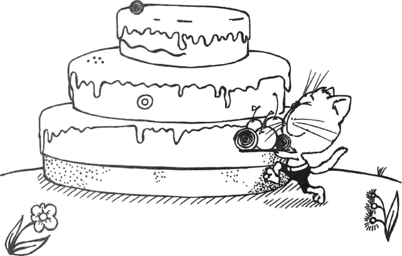— Надо приготовить Мусе подарки, — подумал Вася. — Муся любит конфеты, бусы, а также воздушные шарики и мячи... Что же ей подарить? Да, ещё торт надо украсить! Как же мне всё успеть?