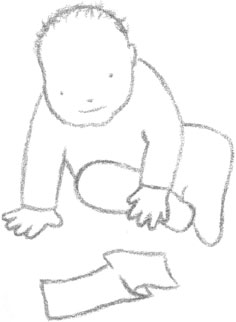 • Устройтесь с малышом на полу и положите один из кусочков поближе к нему так, чтобы он смог до него дотянуться. Когда ребенок ухватится за кусочек ткани, похвалите его.