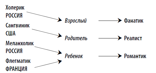 Психоаналитик Эрик Берн, автор известной книги «Игры, в которые играют люди…», утверждал, что в каждом из нас представлены три состояния Эго – Ребенок, Взрослый, Родитель. В зависимости от того, какое состояние является ведущим, всех нас можно поделить на Романтиков (Ребенок), Реалистов (Родитель) и Фанатиков (Взрослый).