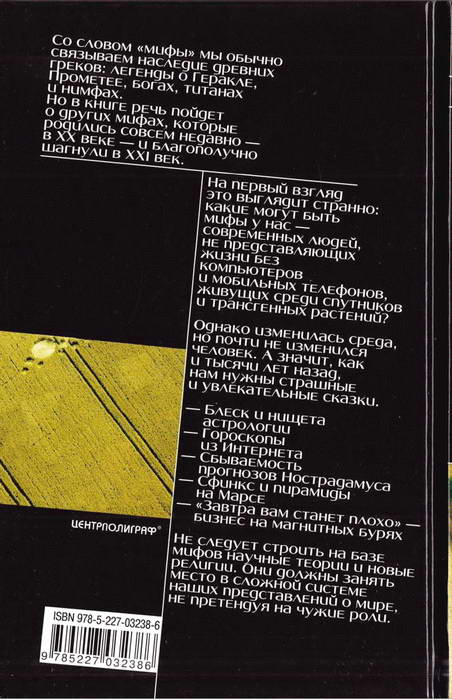 Итак, книга закончена. К сожалению, объем не позволяет рассмотреть все естественно-научные мифы, благополучно существующие сегодня, в начале XXI века. Здесь ничего не сказано о лох-несском чудовище, «снежном» человеке, Бермудском треугольнике, «весе» души умирающего человека, телекинезе, левитации, некоторых возможностях Яогов, колдовстве и всяческой магии, открытиях и книгах Э. Мулдашева и так называемой «новой хронологии» академика А. Фоменко. Увы, применяя принципы научного метода ко всему этому «джентльменскому набору», можно прийти к выводу о том, что и это только мифы… Питательная пища для мифов — наша необразованность, наше невежество, наша нелюбознательность.