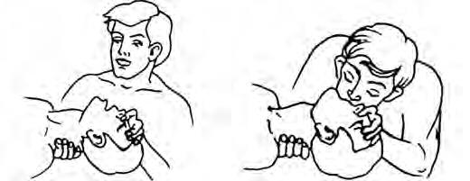 Выдох делается без особого напряжения, но несколько энергичнее, чем обычно. Нужно помнить, что избыточный воздух под сильным давлением, особенно при недостаточно откинутой голове, поступает не в легкие, а в желудок, перерастяжение которого может привести к рвоте. В бессознательном состоянии она опасна тем, что рвотные массы могут попасть в воздухоносные пути.