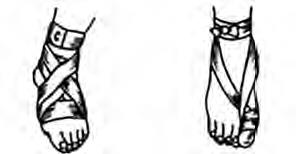 Крестообразная повязка на область голеностопного сустава и повязка на первый палец стопы