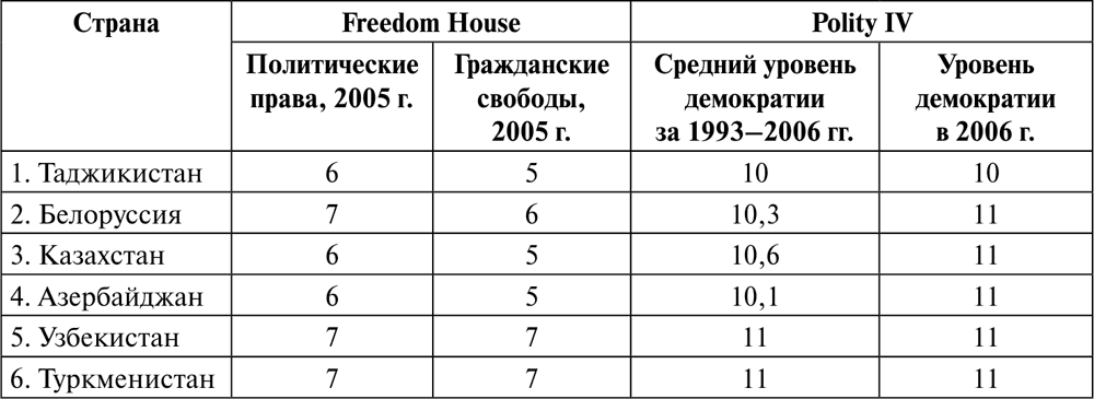 Таблица 20.3. Автократии в постсоветской Европе и Азии в 1993–2006 гг.