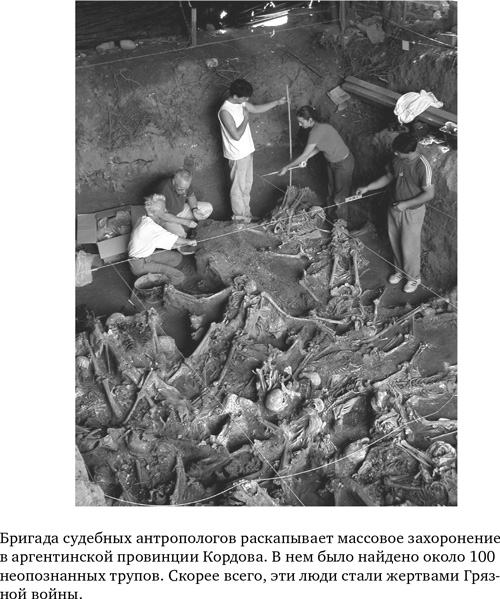 С 1976 по 1983 год Аргентиной правила военная хунта, преследовавшая тех, кого считала левыми и подрывными элементами. Этот конфликт получил название Guerra Sucia, или Грязная война. В Буэнос-Айресе и других городах жителей похищали прямо на улицах или забирали из домов и увозили в одну из 300 секретных тюрем. Многих мужчин, женщин и детей пытали. Выжившие описывали, как их привязывали к металлической сетке и пытали током. Мучили даже беременных. Других накачивали наркотиками, ослепляли и сбрасывали с самолетов в реку Ла-Плата между Аргентиной и Уругваем. Впоследствии волны выносили тела на берег. Трупы, которые не попадали в общие могилы или воду, отправлялись в морги с надписью «Без имени». Один рабочий рассказывал, как «тела хранились более 30 дней без охлаждения», как над ними вились тучи мух, а «пол был покрыт 10-сантиметровым слоем червей и личинок». Жертвами Грязной войны стали около 30 000 мирных жителей. Еще около 10 000 «пропали без вести».