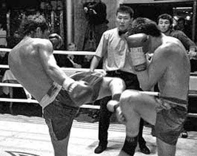 Ближний бой. Если для тайбоксера-новичка ближний бой отождествлялся в основном с боксерской борьбой, то при обучении тайбоксеров младших разрядов необходимо больше времени уделить ударной и защитной технике, расширяя их арсенал, и способам входа в ближний бой и выхода из него.