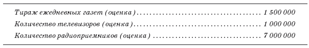 Ввиду короткого времени, за которое свершится переворот, а также из-за вероятного наличия особого «социального фона» в стране-мишени пресса не будет нашей главной целью; мы подчиним ее себе после переворота, как и другие аспекты национальной жизни. Пресса может играть только маргинальную роль в странах, где изрядная часть населения не владеет грамотой, к тому же радио– и телевещание в таких странах обычно ассоциируются с голосом правительства. Примерные сравнительные данные по арабскому миру из Таблицы XII иллюстрируют важность отдельных СМИ в одной из частей «третьего мира».