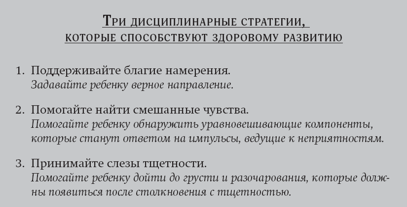 Многие популярные дисциплинарные практики выражают сомнение в намерениях ребенка и убеждают в том, что дети не хотят естественным образом быть хорошими для своих взрослых. Чтобы изменить устремления ребенка, его наказывают вместо того, чтобы принять во внимание, что эмоции и импульсы одолели его и затмили его благие намерения. Если ребенок видит, что родители верят, что он пытается сделать все правильно, но ошибся, то это не только защитит отношения, но также поддержит готовность ребенка продолжать стремиться в правильном направлении. Это показывает веру в то, что ребенок может исправиться, говорит ему о том, что его все равно будут любить, несмотря на ошибки, и оберегает чувство собственного достоинства всех участников процесса. Как сказала мне одна мама: «Это было словно чудо, когда я впервые заметила, что мой ребенок старается быть хорошим для меня. Дисциплина стала простой и легкой и, на самом деле, едва ли нужной».