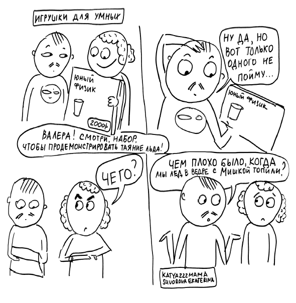 Мода на раннее развитие стимулирует рынок предлагать все новые товары для удовлетворения потребностей родителей. Именно так: потребностей родителей, но не детей. У родителей есть потребность в снижении своей тревоги: «Достаточно ли мы вкладываемся в развитие своего ребенка? Своевременно ли? Не опоздали ли мы с покупкой энциклопедии?»