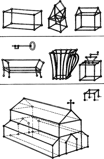 Горох для этих работ нужно мочить в холодной воде в продолжении 5–6 часов, затем его следует вынуть и положить на тряпочку или пропускную бумагу, чтобы он несколько обсох, иначе кожица горошин будет лопаться, когда начнут в них втыкать палочки. Кроме того, оба конца палочки дети должны несколько обстругать, чтобы они легче входили в горох…