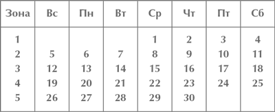 Если вы взглянете на свой календарь, то заметите, что в основном в месяце пять недель. Вот как мы определяем, в какой зоне находимся.