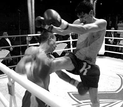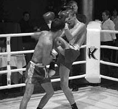 Аналогично после смены ног шагом или перескоком выполняется прямой удар левым коленом.