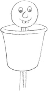 • В днище бумажного стаканчика проделайте отверстие и вставьте туда соломинку с приклеенным с одного края кружочком картона, на котором нарисована веселая физиономия.
