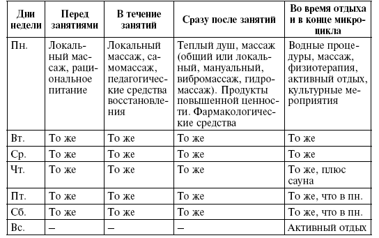 План применения средств восстановления в недельном микроцикле в период напряженной тренировки