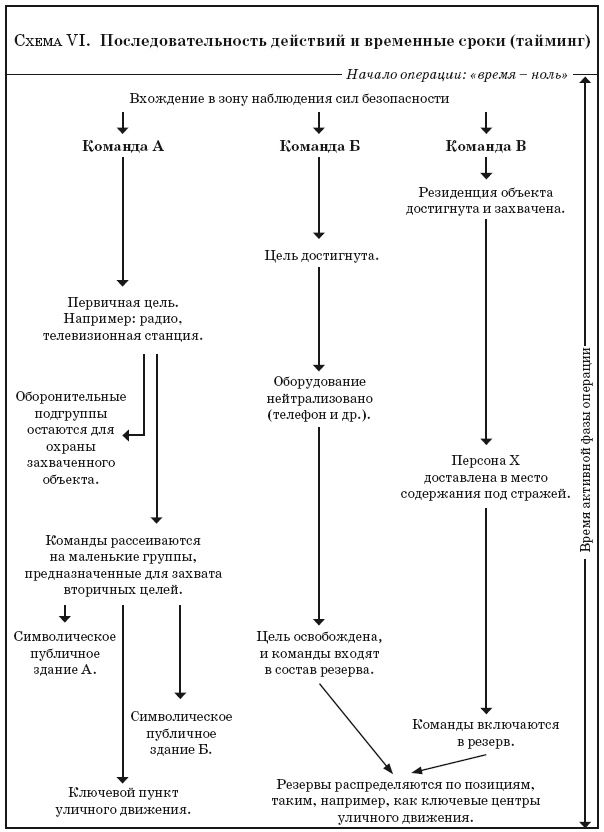 В предыдущих двух главах мы описали планирование переворота в смысле нейтрализации «профессиональных» защитников государства и выбора целей, которые смогут помочь в нейтрализации «политических» сил. Проанализировав структуру средств подавления, мы увидели, что большинство вооруженных сил, значительная часть полицейской системы и некоторые из органов безопасности не выступят в случае переворота ни на нашей, ни на противной стороне. Им помешают отдаленная дислокация, распыленное размещение, неадекватные подготовка и оснащение либо узкая специализация. Поэтому мы внедрились в небольшую часть аппарата, который имеет возможности для вмешательства, причем большая часть его была нами нейтрализована технически, а меньшая – полностью привлечена на нашу сторону. Это обеспечит нам нейтралитет большинства сил защиты государства и активное сотрудничество некоторых из них.