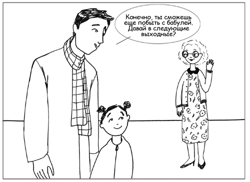 Применение этого приема варьируется в зависимости от возраста ребенка. Двухлетней крохе, которая хотела бы подольше побыть в гостях у бабушки, можно сказать: «Конечно, тебе не хочется уходить от бабули. Сейчас нам пора, но давай спросим бабулю, можно ли нам снова прийти к ней в гости в следующие выходные!» Ребенок, скорее всего, все равно будет огорчен отказом задержаться в гостях, но вы поможете ему понять: пусть даже он не получил желаемого именно сейчас, он услышит «да» очень скоро. Самое главное – верно определить и разделить с ребенком то чувство, которое им движет (желание побыть с бабушкой), в то же время поддержав порядок и развив у малыша полезный навык (способность принять необходимость уйти из гостей сейчас и отложить удовольствие от выполнения желания).