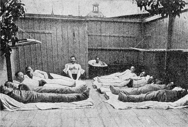 К концу XIX века вошло в моду лежание как метод лечения, особенно при нервном истощении (сегодня его называют неврастенией), истерии и общем физическом истощении. «Чтобы дать нервной системе необходимую для ее восстановления степень покоя, мы должны заботиться о максимальном исключении всех чувственных возбудителей, всех волевых усилий и мыслительных процессов, требующих напряжения», – писал невропатолог Леопольд Лёвенфельд (1847–1924). Он несколько лет практиковал в Нью-Йорке, потом возвратился в Мюнхен, где применял в числе прочих методов и гипноз. Во многих случаях он сочетал лежание с «лечением питанием по Митчеллу – Плейферу», названным по именам американца Сайласа Уэйра Митчелла, который придумал и сделал популярным лечение лежанием на воздухе, и англичанина Плейфера. В сложных случаях больной должен был проводить в постели от шести до восьми недель. В начале этого периода ему даже не разрешали присаживаться, все это время пациента кормили, можно сказать прямо-таки «откармливали» (недаром этот метод называли «лечебным откормом»). Меню включало большое количество молока, позднее – супы, солодовый экстракт, а также шампанское или красное вино во время еды. Вскоре Томас Манн описал этот метод лечения и общество, собиравшееся в санаториях, в истории Ганса Касторпа, молодого человека, приехавшего в «Берггоф» навестить кузена и вскоре оказавшегося лежащим по предписанию врача «в замечательном шезлонге на своем балконе». Он рискует превратиться «в настоящую мумию», которую впереди ожидают «только часы лежания». Лежание, «горизонтальный образ жизни», в «Волшебной горе» вырастает даже до «горизонтальной формы существования»: «Нам велено как можно больше лежать… Сеттембрини уверяет, что мы проводим всю нашу жизнь в горизонтальном положении, поэтому являемся, так сказать, горизонталами… По-моему, довольно плоская шутка»[29]. И Зигмунд Фрейд пишет в своих «Очерках об истерии», что после первоначального предубеждения он привык к тому, чтобы «сочетать психотерапию с лечебным лежанием, которое при необходимости превращалось в полное лечение питанием по Митчеллу и Плейферу». Далее он обосновывает свое решение: «При этом я получаю то преимущество, что, с одной стороны, могу во время психотерапии избежать чрезвычайно мешающего влияния новых психических впечатлений, а с другой стороны – исключаю скуку “откорма”, от которой больной часто впадает во вредную мечтательность».