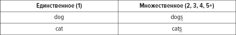 В английской грамматике используются всего два числа: единственное (когда предмет один) и множественное (когда предметов больше одного). Если предметов более одного, это обычно обозначается добавлением s в конце слова, как в следующем примере: