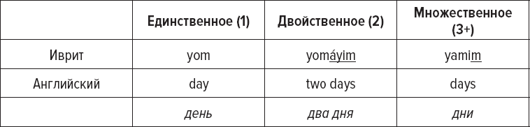 В некоторых языках число бывает не только единственным и множественным. Например, в иврите есть двойственное число: