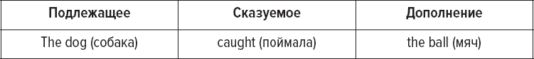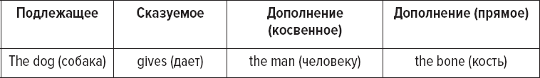 Например: The dog (S) chews (V) the bone (O). (Собака грызет кость.)