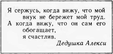 — Мы все друг друга воспитываем, — говорю дедушке, — воспитывая детей, я сам тоже воспитываюсь в какой-то мере...
