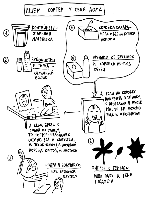 Как же правильные мамы любят все усложнять! Мне это тоже знакомо. Сначала убеждаешь себя в необходимости каких-то специальных занятий для развития ребенка, рисуешь в своем воображении идеализированную картинку этих занятий, а потом испытываешь чувство вины и разочарование. Особенно трудно приходится мамам-перфек-ционисткам, которые любят стройные системы, строгое расписание и четкое поурочное планирование. А живой ребенок как будто специально рушит структуру, капризничая, отвлекаясь от занятия, все делая не так, как описывается в методическом пособии. Какой тут может быть выход? Отказ от идеализации. Здравствуй, хаос. Смещение фокуса внимания с результата на процесс. Процесс должен быть таким, чтобы приносил удовольствие и ребенку, и взрослому.