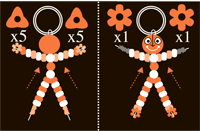8 Наденьте на туловище человечка три круглые пластиковые бусины и протолкните их до рук. Они сформируют его торс.
