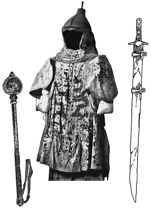 Доспехи монгольских воинов конца XIII в.: палаш (справа) и булава (слева)