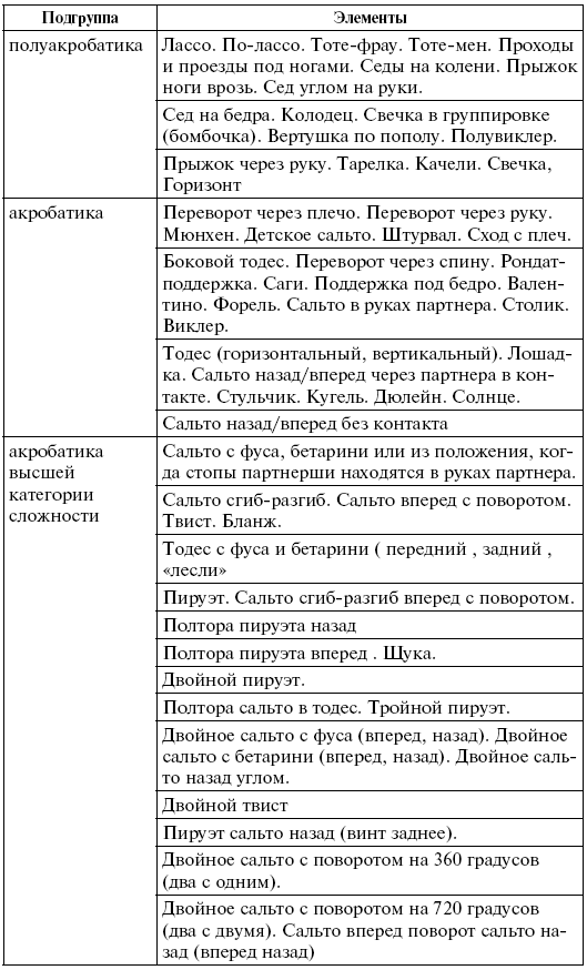 Профилирующая подготовка предполагает освоение техники следующих элементов: