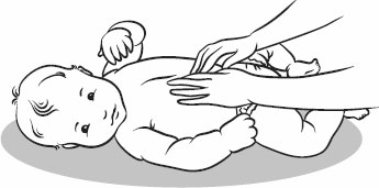 Исходное положение – лежа на спине. Основными приемами массажа груди является поглаживание и вибрация. Поглаживания проводятся в 2 этапа: круговые поглаживания и обыкновенные. В начале процедуры нужно сделать несколько круговых поглаживаний груди, а затем перейти к обычным по межреберьям ребенка, которые следует проводить расставленными пальцами.