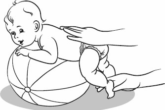 Исходное положение – лежа на животе. Данная процедура способствует развитию и тренировке вестибулярного аппарата, а также расслаблению мышц конечностей. Она должна проводиться через полчаса после приема пищи. Для ее выполнения необходимо использовать большой надувной ярко раскрашенный мяч. Такой снаряд вызовет у ребенка положительные эмоции. Кроме того, необходимо следить, чтобы мяч не был холодным. В противном случае он может вызвать отвращение и неприязнь ребенка.