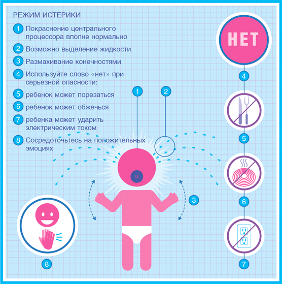 Такие вспышки гнева появляются у ребенка между десятым и двенадцатым месяцами жизни. Он плачет или хнычет, тянется к предметам, которые ему хочется схватить, пинается ножками, машет кулачками, стучит ручками. У некоторых моделей истерики периодически случаются в течение нескольких лет. Справиться с ними вам помогут следующие советы.