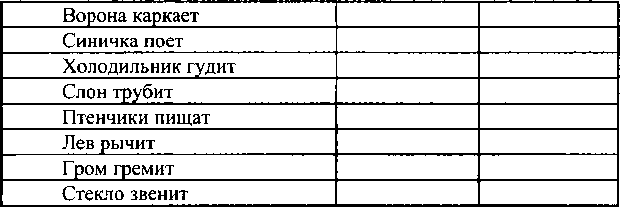 Воспитатель перечисляет звуки обыденной жизни. Например: лев рычит, воробей чирикает, мышь пищит, гром гремит, стакан разбился и т.д.