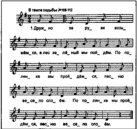 Выучите с детьми песенку «Ребята и медведь». Исполняйте ее в темпе, удобном для ходьбы.