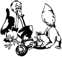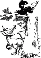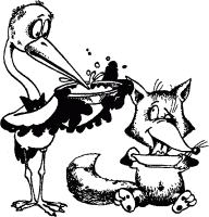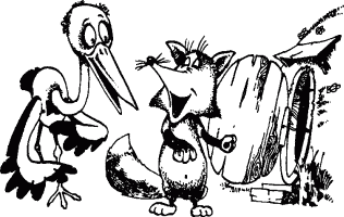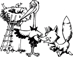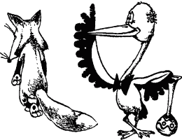 Здесь вы найдете рисунки для трех басен: «Лягушка и Вол», «Ворона и Лисица» (как наиболее известная) и «Лисица и Аист»,[19] которая нравится большинству детей.