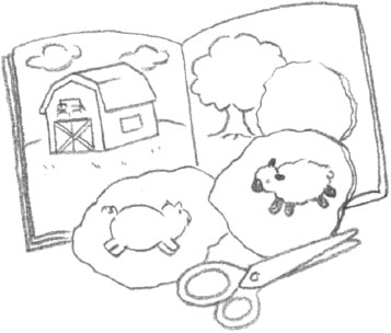 • Вырежьте из журнала знакомые ребенку фигуры – животных, детей, продукты.