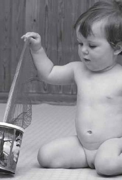 Мы вырезаем отверстие в крышке банки, кладем в банку платок или ленту так, чтобы высовывался только краешек. Ребенок начнет вытягивать платок.